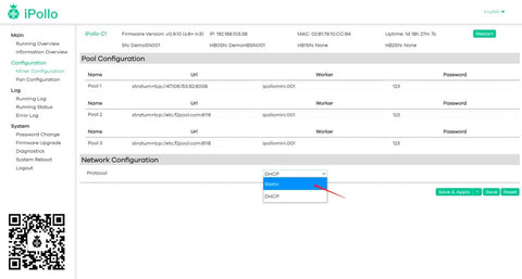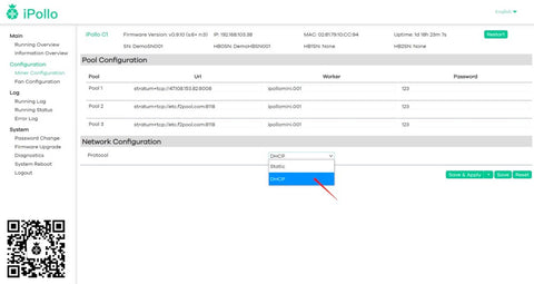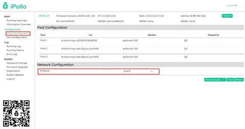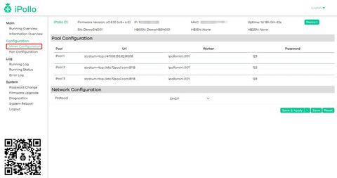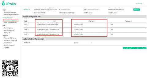 Haga clic en la interfaz "Configuración de minero" de "Configuración" para configurar el "Piscina de minería" y la "Red"