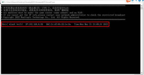 (8) Abra la herramienta showIP y presione el botón "Informe de IP" del servidor para obtener la nueva dirección IP del servidor, que es la IP de la configuración WiFi.