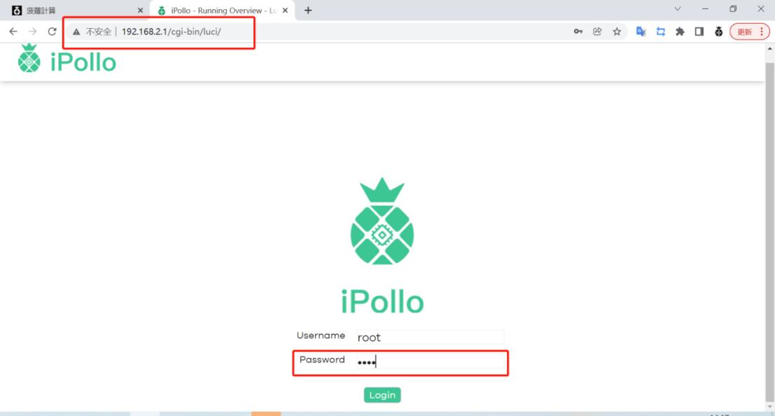 - After finding the IP of the server, enter the obtained IP address in the browser (Google is recommended), press Enter to enter the server login interface, and enter the default administrator account and password: root
