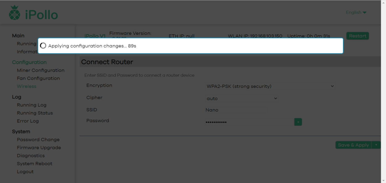 After setting, click “SAVE&APPLY”, the system will save and automatically restart to take effect, and the server will start to run normally.