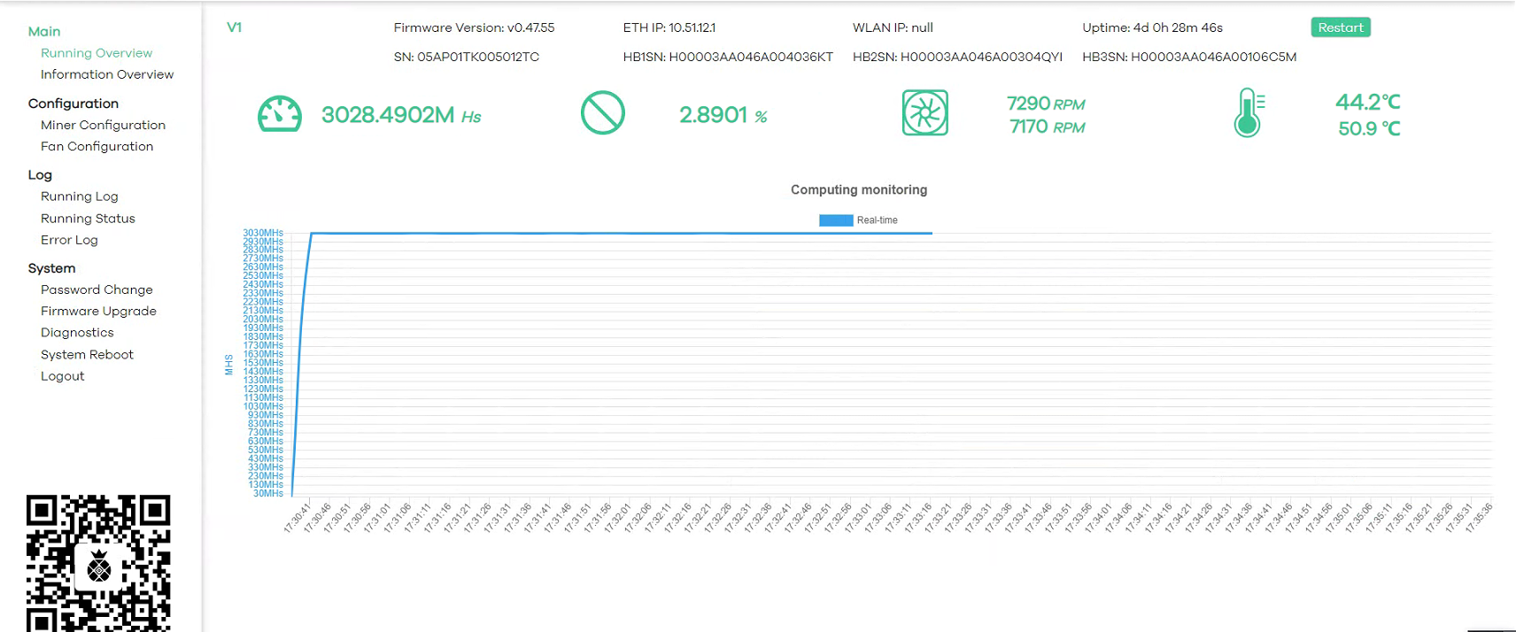 - After the machine is running normally, please use the "24-hour hashrate of the Mining Pool" as the criterion.